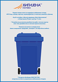 ЈКП „Хигијена“ Панчево настојаће да опреми сва домаћинства на територији града Панчева посудама за издвајање отпада – зеленом кантом за комунални, кућни отпад и плавом – за амбалажни отпад